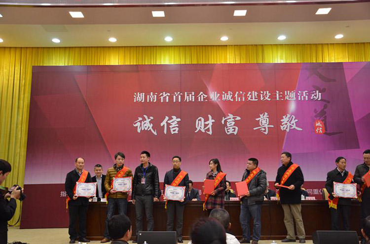 12月19日,湖南省委九所宾馆大会议室灯光闪耀,湖南省首届企业诚信建设主题活动颁奖庆典在这里隆重举办。本次活动中,公司荣获“湖南诚信企业”、“湖南诚信百强品牌”两项荣誉。