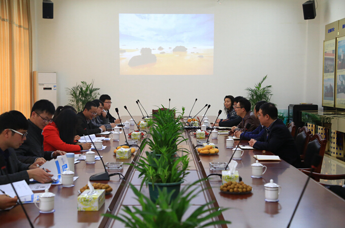 与扬子江药业考察团(左)会谈