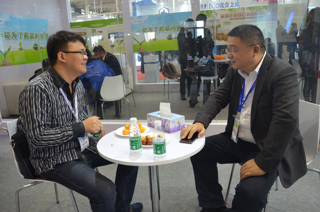 展会上,尔康制药的展台位于医药原料展主场馆(7号馆)东入口的右侧第一位,展位号7B22。参展面积180多平米,在展台设计上充分融合了公司“绿色、天然、安全”的理念,十分醒目。同时,一侧的巨幅LED屏幕滚动播放公司的宣传片以及各省市媒体对公司的宣传报道,声画结合让客户对尔康制药的产品和企业文化一目了然。展区内部的展示台分为全淀粉胶囊、明胶胶囊、原料药、成品药四大区域,其中全淀粉胶囊备受参展人员的关注和青睐。