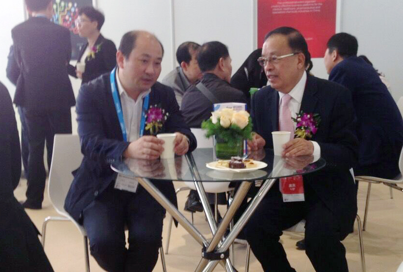 公司总经理刘爱军与中国化学制药工业协会执行会长潘广成(右一)亲切交谈