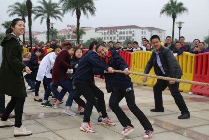 随着哨声一响,拔河比赛正式开始,尔康的运动员们双手握紧长绳,咬紧牙关向后拉,为了把握节奏形成合力,运动员们口中一起高呼着“一二、一二”,和场上的加油助威声遥相呼应。每向后赢得一步,运动员们都拼尽全力,经过同心协力顽强拼搏,尔康制药男子队在36支队伍中成功晋级前八强。