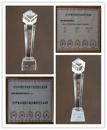 凭借优秀的产品质量和温馨的服务,尔康制药在本届API盛会中从很多品牌医药企业中脱颖而出,荣获“2016中国化学制药行业优秀产品品牌”、“2016中国化学制药行业药用辅料优秀企业品牌”、“PHARMEX医药辅料配料展明星产品”、“PHARMPACK医药包装材料展明星产品”等多项荣誉。