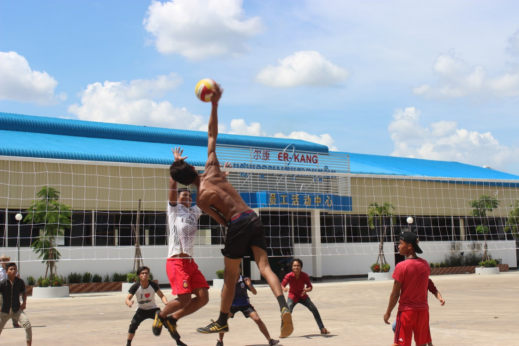 除了柬新年庆祝活动外,公司还为柬籍员工准备了排球比赛。柬埔寨人向来对排球运动喜爱有加,且训练有素。比赛通知一发布,便得到了柬籍员工的热情响应,他们每天下班后在排球场积极训练备战。当天下午1:20,排球比赛正式开始,对战队伍分别为尔康淀粉厂与旺康生化有限公司,只见参赛队员腾空跃起,一记迅猛又果断的发球拉开了比赛帷幕,比赛一开始就进入了激烈的角逐,双方队员努力拼搏,紧密配合,毫不退让。尽管烈日当头,天气炎热,也丝毫未减弱队员们的参赛激情,大家的热情可与烈日争高低。强劲有力的发球、迅猛霸气的扣球,让比赛精彩绝伦,吸引了众多领导、员工到场观看助威。经过三轮激烈的角逐,最终旺康队获得冠军,尔康淀粉队获得亚军。排球赛在参赛队员们的尽兴发挥、观众们的回味无穷中落下帷幕。
