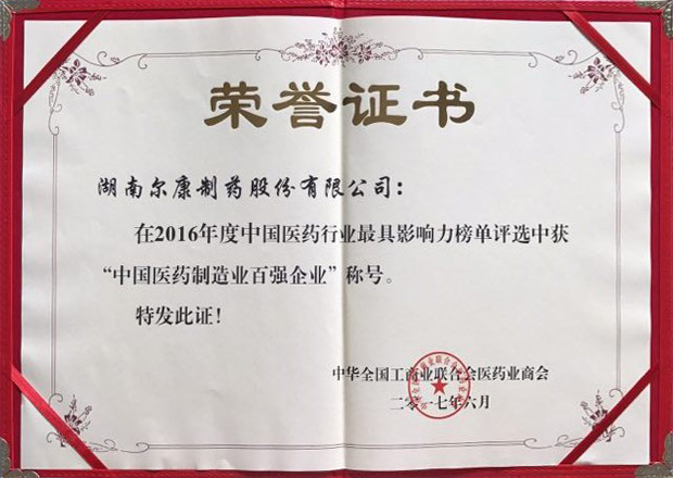 尔康制药荣获2016年度中国医药工业百强和成长50强两大荣誉