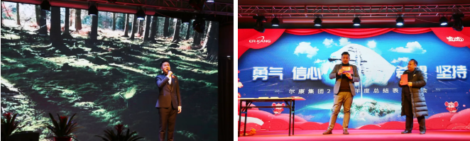 尔康制药总经理孙庆荣总结了过去一年公司的发展情况,虽然经济下行,形势严峻,但是所有尔康人发扬不怕苦、不服输的工作作风,公司实现了稳步发展。在新的一年里,希望每一位尔康人怀抱“勇气、信心、希望、坚持”,勇往直前,努力创造新的成绩。