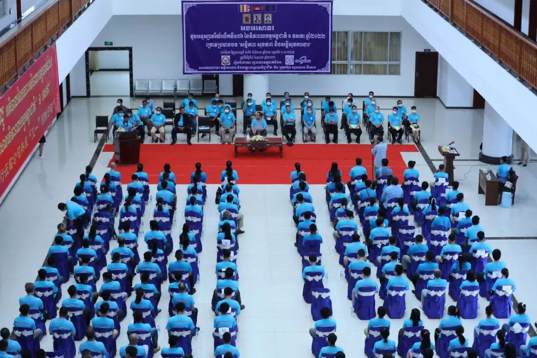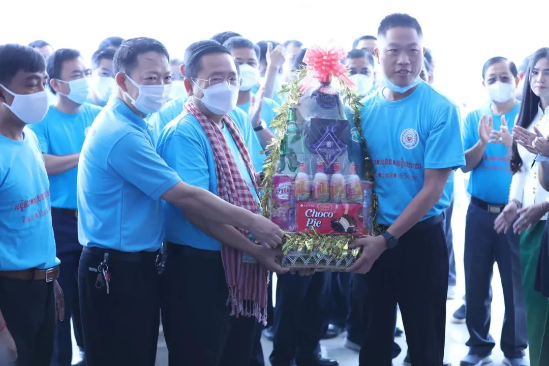 2022年5月5日,柬埔寨马德望省省长Sok Lu阁下携省政府领导、各厅局负责人莅临湖南尔康制药股份有限公司的柬埔寨产业园区考察,并与尔康制药柬埔寨公司员工、当地优秀学生代表共庆“五一”国际劳动节。