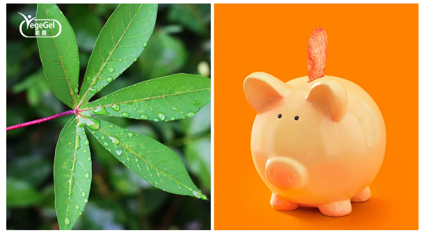 植物胶囊,以淀粉植物胶囊为例,从木薯种植到木薯淀粉提取,再加工至胶囊,原料天然、简洁、生产过程无污染、不含动物源、无防腐剂、无杀菌剂(环氧乙烷)、无化学添加剂;