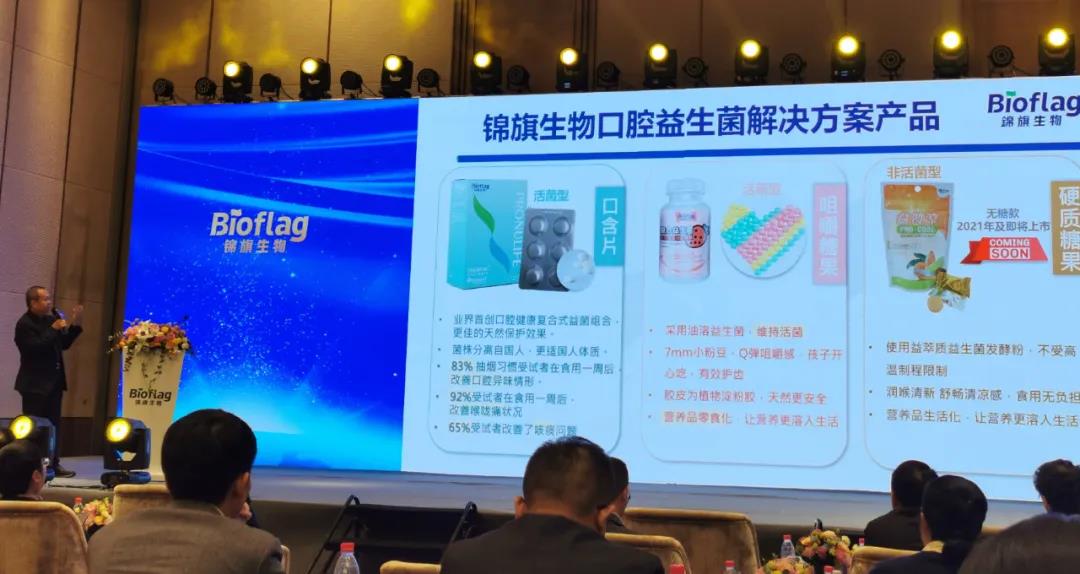 本次论坛上,VegeGel素囊植物胶囊助力澳优集团锦旗生物公司研发口腔健康新品——益生菌植物胶凝胶糖果。